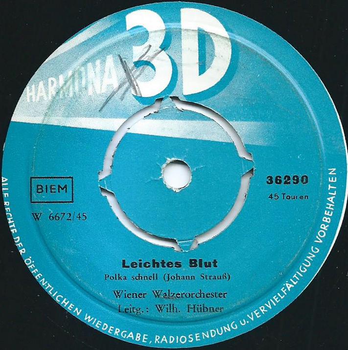 Harmona 3D 36290 7″ Vinyl Single: WIENER WALZERORCHESTER Fächer-Polonaise / Leichtes Blut AbbildungDatenInterpretFächer-Polonaise – 3Fächer-Polonaise – 4 7″ Vinyl Single: 1956 | A | Harmona 3D 36290 WIENER WALZERORCHESTER Leitung: Wilhelm Hübner A1. Fächer PolonaiseHörprobeAutor C. M. Ziehrer B1. Leichtes BlutHörprobeAutor Johann Strauß Teilen via: Vorheriger Medium Harmona 3D 36289 Nächster Medium Harmona 3D 36291