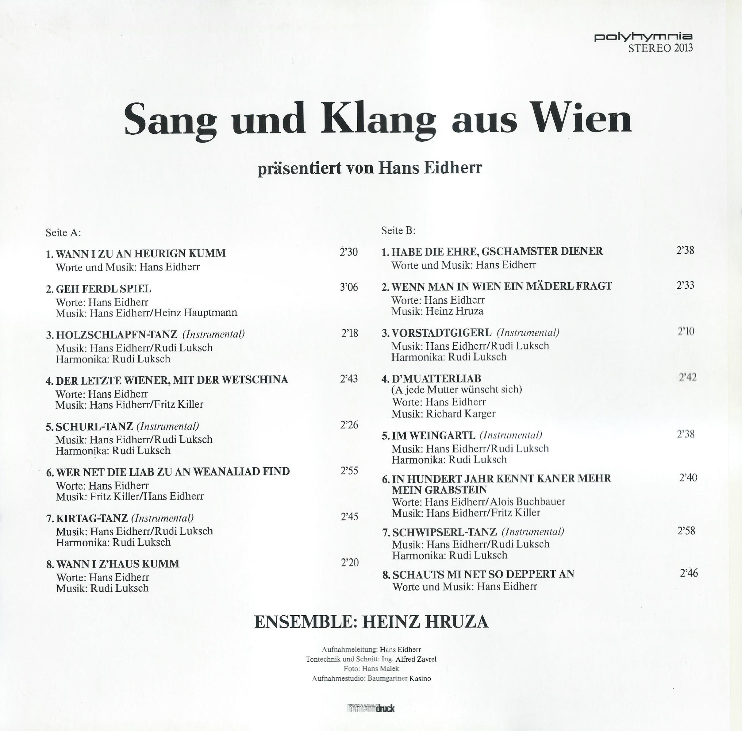 Aufnahmeleitung: Hans Eidherr