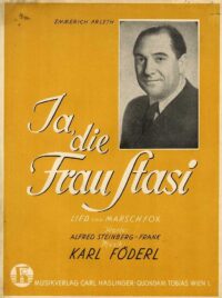 Und was ganz persönliches aus meiner „Erinnerungslade“: Fredl, Karl Föderl und mein Vater trafen sich gerne bei einem guten Glaserl Wein. Es musste ja nicht unbedingt im Kaffee Föderl sein. Es gab da einen „Kren“ aufs Wienerlied in Maria Enzersdorf, das war der Gallhuber Pepi. Bei ihm im Garterl entstand aus der Stimmung heraus „In Maria Enzersdorf da wachst ein Tröpferl“ – ein fesches Marschliedel. Steinberg-Frank hatte den Text im Nu fertig, dem Karl Föderl wurde das Pianino in die Laube geschoben und mein Vater sang vom Zettel.