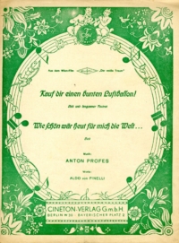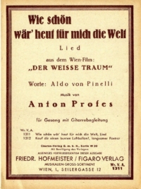 Bald werden es 60 Jahre, dass im Berliner UFA Palast der Wien-Film „ Der weisse Traum“ uraufgeführt wurde. „Kauf dir einen bunten Luftballon“ und der langsame Walzer “Wie schön wär‘ heut‘ für mich die Welt, wenn der, der mir gefällt mich in die Arme nähme“ wurden bejubelt, wie der Komponist Anton Profes, wie Karl Schäfer, Oskar Sima, Lotte Lang, Olly Holzmann, Wolf Albach Retty, u.a.