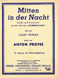 Und somit sind wir bei Anton Profes, der am 26.3.1896 geboren, vor 25 Jahren am 22.8.1976 in Salzburg gestorben ist. In Leitmeritz, am Schickschalsstrom Elbe kam er zur Welt, hat in Prag Musikwissenschaft studiert, mit 20 Jahren bereits im mondänen Karlsbad eine Kapelle geleitet, Barmen-Elbersfeld, Königsberg und Hamburg folgten, bevor er in Berlin landete.