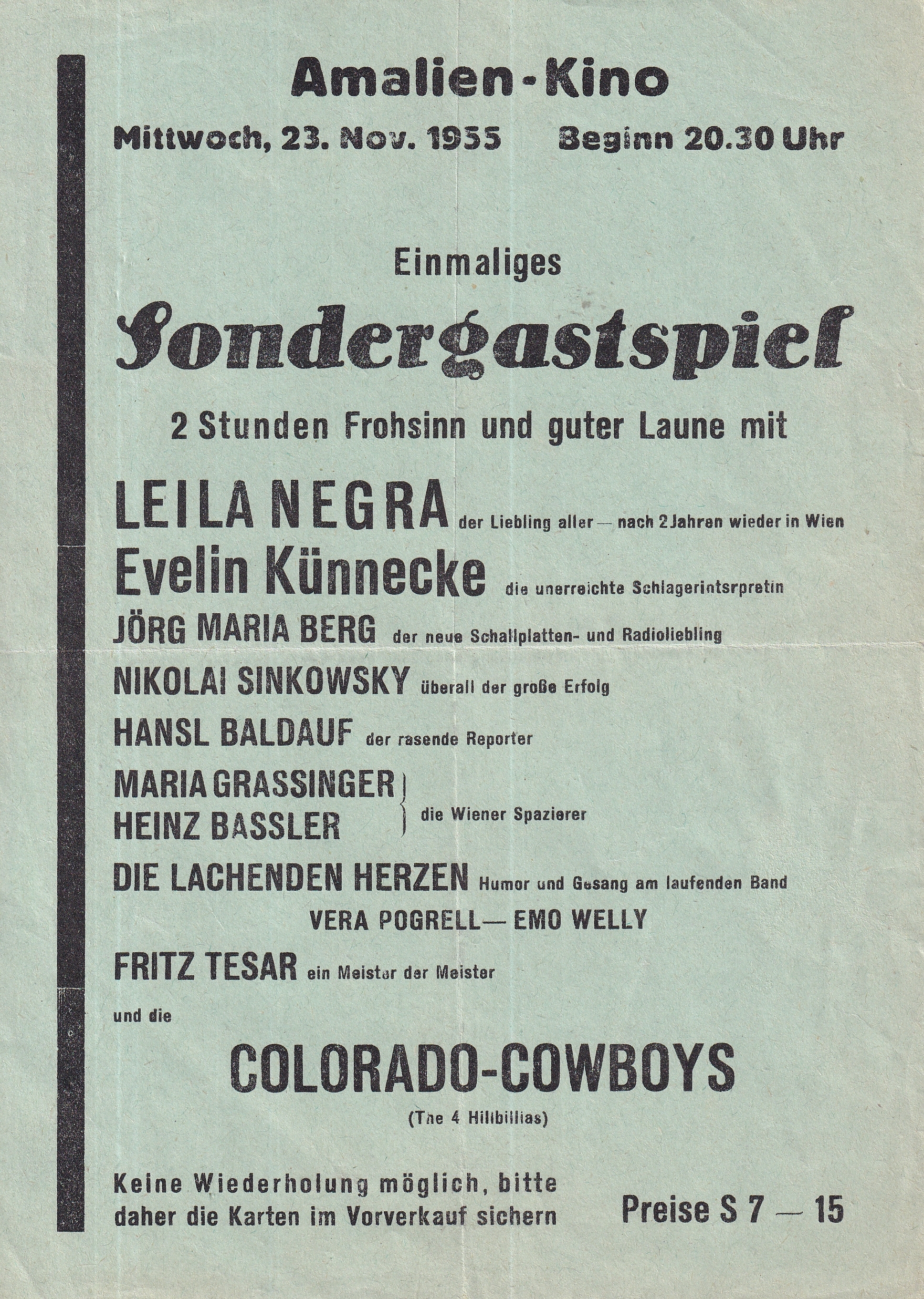 Die Gruppe feierte große Erfolge in den Lokalen Fischrestaurant Winter am Alberner Hafen, im Restaurant Brodnik am Flösslerteich in Oberlaa, beim Heurigen Zum Pepi Plass in der Hafenzufahrtsstrasse 4 im Prater.