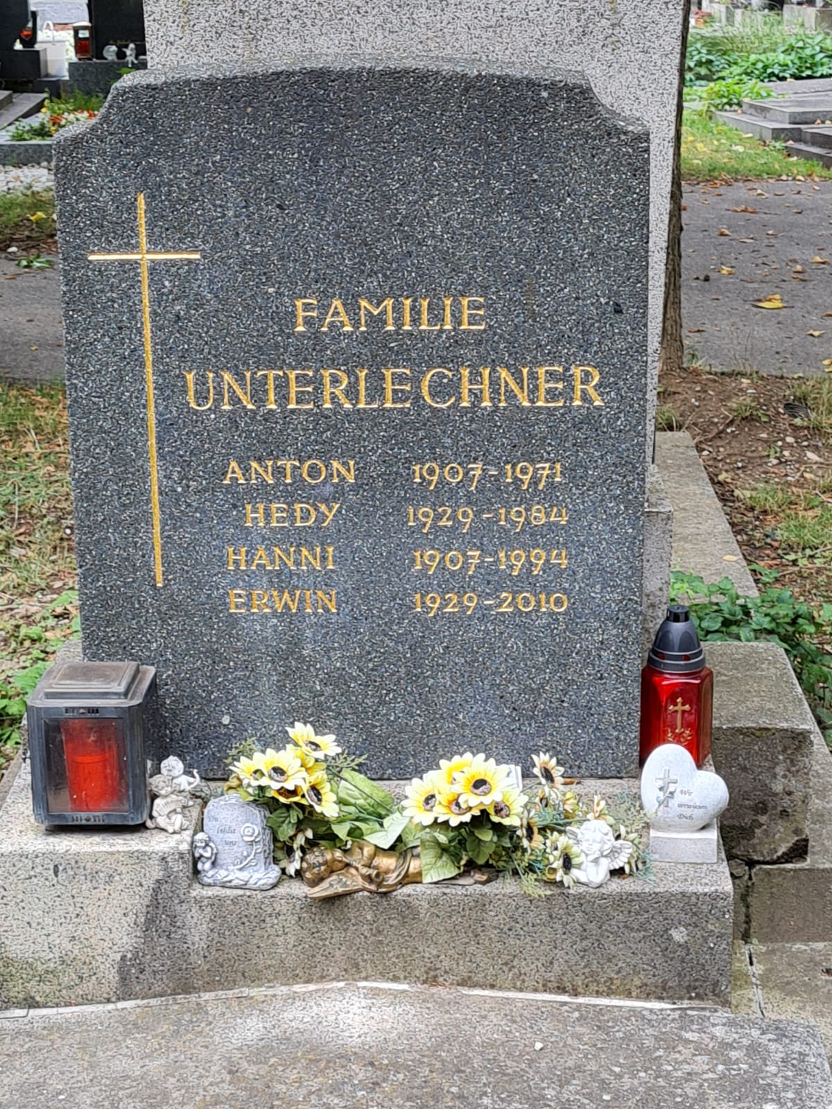 Nach seinem Tod kam Erwins Großkusine aus Stans in Tirol eines Tages nur für ein paar Stunden nach Wien und wollte unbedingt Erwins Grab besuchen. Sie wusste nur den Friedhof und die ungefähre Lage des Grabes. Ziemlich enttäuscht, da sie es einfach nicht finden konnte und der Bus bald wieder zur Abfahrt nach Tirol erreicht werden musste, gab sie die Suche auf und drehte sich Richtung Ausgang um. Da fing eine Krähe total laut zu krähen an und Karin ging wie in Trance auf die Krähe zu und siehe da – diese saß genau auf dem Grabstein von Erwin. Irgendwie unheimlich, was?