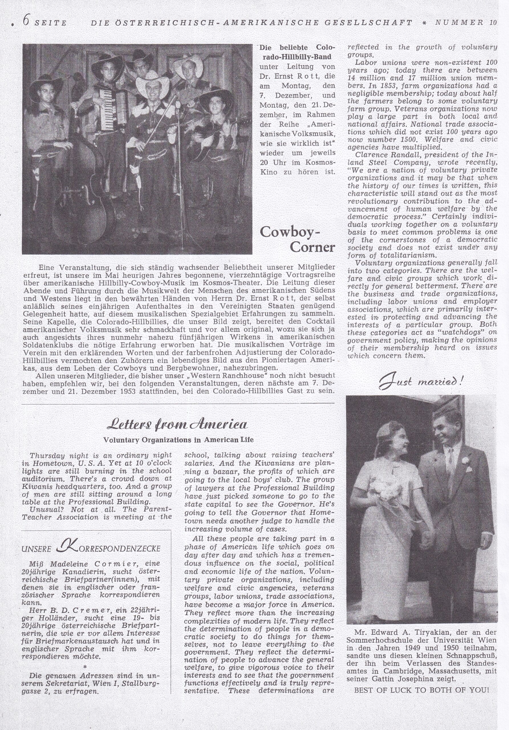 ca. 10 Jahre in Kooperation mit der österr./amerik. Gesellschaft in den diversen Clubs Hillbilly- und Westernmusik und zum Square-Dance spielte, oft nur für Zigaretten oder Verpflegung. Damit es amerikanischer klingt, nannte man ihn „Irving Underlee“. Conny Tex Hat hatte im Österreichischen Rundfunk eine Sendung mit dem Titel „Das Lied der Prärie“. Darin erzählt er von der ersten Hillbilly Band Österreichs – den Collorado Cowboys, die bis Ende der Fünfzigerjahre bestand.