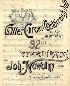 Am 1. August 1886 wurde Johann Nowotny Kapellmeister beim k. u. k. Infanterie-Regiment Nr. 92 in Theresienstadt in Böhmen. Im Gegensatz zu den Militärkapellen in oder nahe den großen Zentren konnte Nowotny nicht auf gut ausgebildete Musiker, oft sogar auf Absolventen des Konservatoriums, zurückgreifen. Er war selbst großteils für die Aus- und Weiterbildung der Musiker verantwortlich. Trotzdem war es bereits nach kurzer Zeit möglich, auch Platzkonzerte durchzuführen. Diese fanden im nahe gelegenen Kur- und Badeort Teplitz-Schönau statt, wo einmal pro Woche konzertiert wurde.