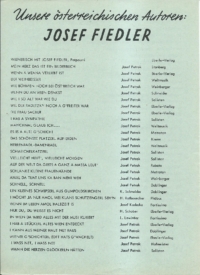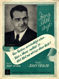 Josef Fiedler ist am 9.4.1898 geboren, in Wien selbstredend. Ihn zogs immer zur Musik. Nach der Volksschule besuchte er das Realgymnasium, maturierte 1916, zog als Reserveoffizier in den Weltkrieg No. I, kam schwer verwundet ins kleine Österreich zurück und wurde 1918 ausübender Musiker.