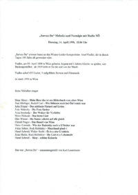 Musik und Text zum Film „1. April 2000“ auch von Fiedler-Petrak und nicht zu vergessen, das langjährige Gastspiel des Pepi im Kaffee Schmid Hansl in der Schulgasse,