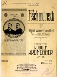 „Fesch and resch, so san mir“ mit diesem Marschliedel und der „Süassen Weana Musi“ wurde Karl Maria Jäger über Nacht bekannt.“Strauß, du Stolz von Wien“, „So a echtes Weana Tanzerl“, „Ausg’steckt is“, „Schicksal, du bist unbarmherzig“, „Wenn ich vom Kahlenberg ‚runter schau“, „Erinnerung an unsern Walzerkönig“ sind einige Titel des Karl Maria Jäger, es gäbe noch seine köstlichen Couplets, eines sang Maria Luise Tichy: „Habens mi schon amal dudeln g’hört“.