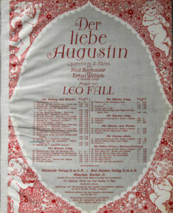 „Die geschiedene Frau“ (1908) folgte und der seinerzeitige Mißerfolg „der Rebell“ wurde unter neuem Titel und Buch 1912 in Berlin als „der liebe Augustin“ wieder auf die Bühne gebracht. „Und der Himmel hängt voller Geigen“ ist das zauberhafte Lied daraus.